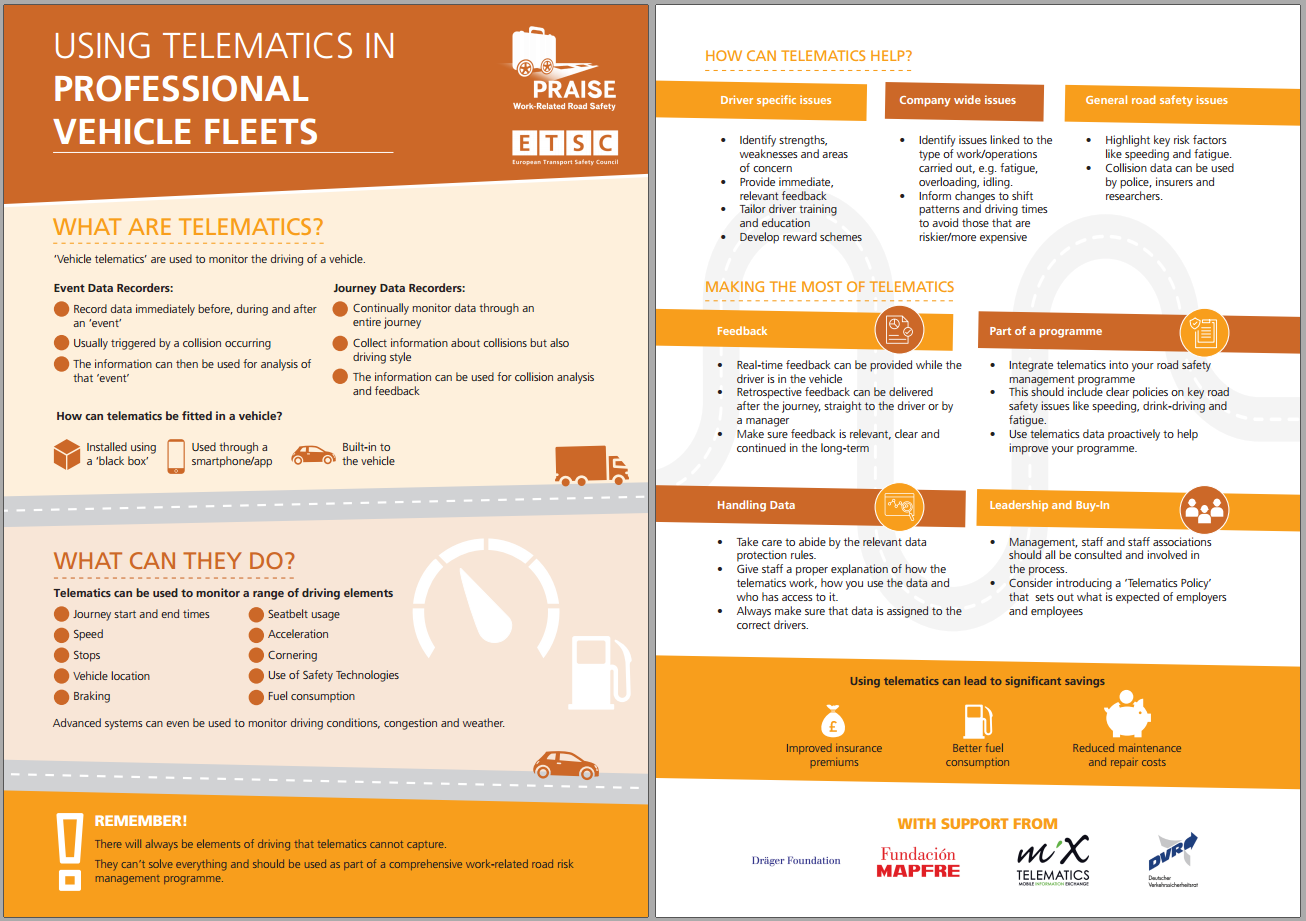 PRAISE was coordinated by the ETSC secretariat with the support of Fundación MAPFRE, the German Road Safety Council (DVR), the Dräger Foundation and MiX Telematics.