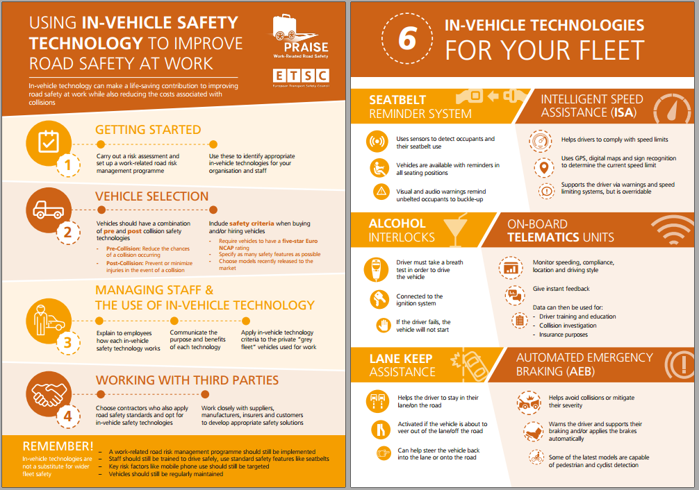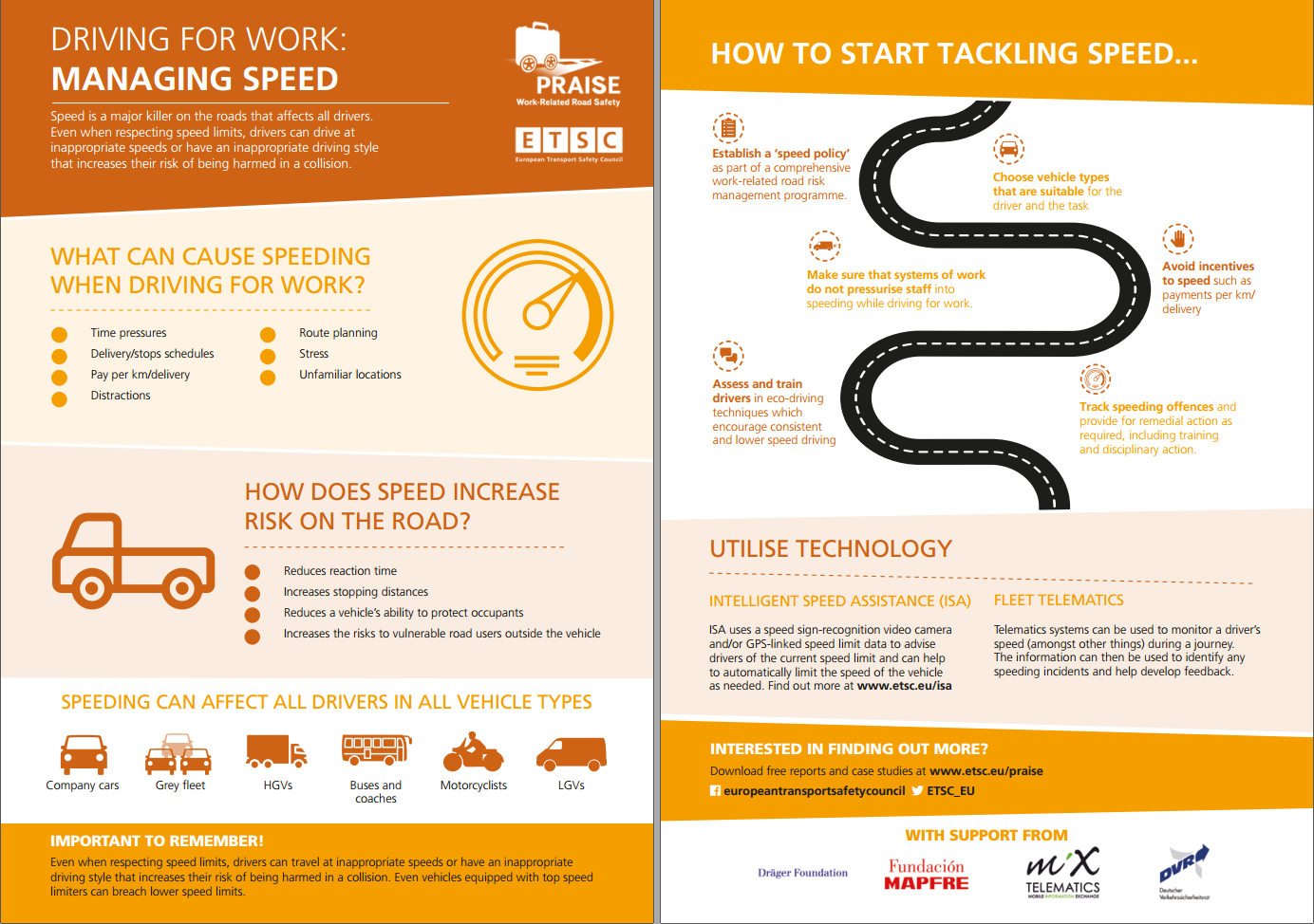 ETSC’s PRAISE project addressed the safety aspects of driving at work and driving to work. Its aim was to promote best practice in order to help employers secure high road safety standards for their employees.
