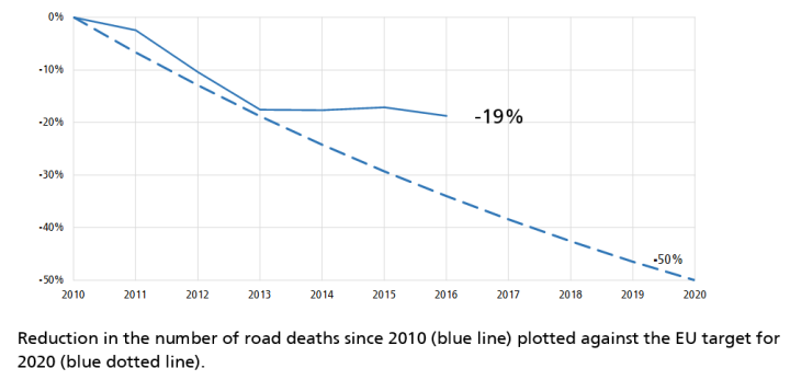 25,671 lives were lost on the road in the European Union in 2016, according to new analysis of EU road safety data, also published today by ETSC. A large proportion of those were victims of work-related road collisions. The exact number is unknown but, based on detailed analysis of data from across Europe, the authors estimate that up to 40% of all road deaths are work-related.